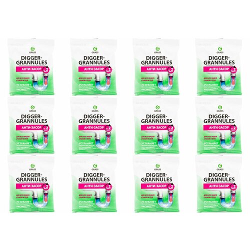 Grass Средство для чистки стоков и труб Digger-Grannules / грасс Диггер-Гранулы Анти-засор, для всех видов труб и стоков, (саше 70 гр), 12 шт