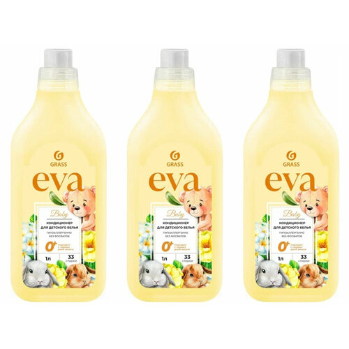 Кондиционер для белья Grass, Eva Baby, концентрированный, 1000 мл, 3 шт