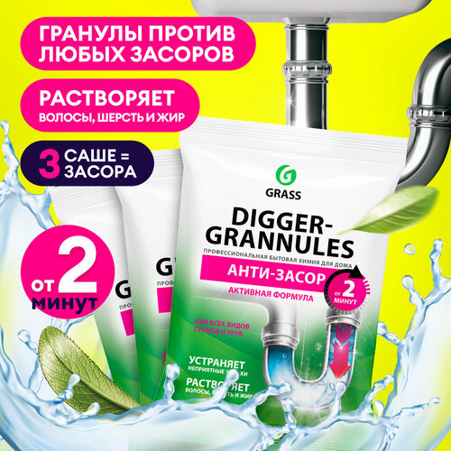 Средство от засоров Grass Digger Grannules для прочистки труб саше 3 шт. по 70гр