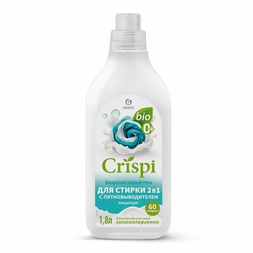 Биоразлагаемый универсальный концентрированный гель для стирки белья 2 в 1 CRISPI с пятновыводителем 1,8л от Grass на 60 стирок - предназначен для высокоэффективной очистки всех типов тканей (для цветного, чёрного, светлого) в воде любой жесткости. За счёт натуральных компонентов - гель полностью безопасен для стирки детского белья и вещей новорожденных (0+). За счёт пятновыводителя, входящего в состав, гель для стирки эффективно удаляет сложные, застарелые загрязнения любого типа, сохраняя цвет, яркость и структуру одежды, придавая ей мягкость и свежий аромат. Средство на основе биоразлагаемых тензитов и натуральных компонентов, не содержит фосфатов, фосфонатов, парабенов и хлора, не вызывает аллергических реакций. Подходит для всех типов стиральных машин, для автоматической и ручной стирки, безопасен для септика. С нашими средствами из линейки Грасс - ваша стирка белья преобразится в многоплановый, интересный процесс, подарив комплексный уход и приятный аромат всем вашим вещам!