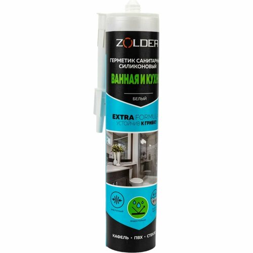 ZOLDER Герметик силиконовый (санитарный) белый " 280мл/12 ЭК000142159. Объем: 0.28л. Вес нетто: 0.34кг. Свойства: атмосферостойкий. Цвет: белый.