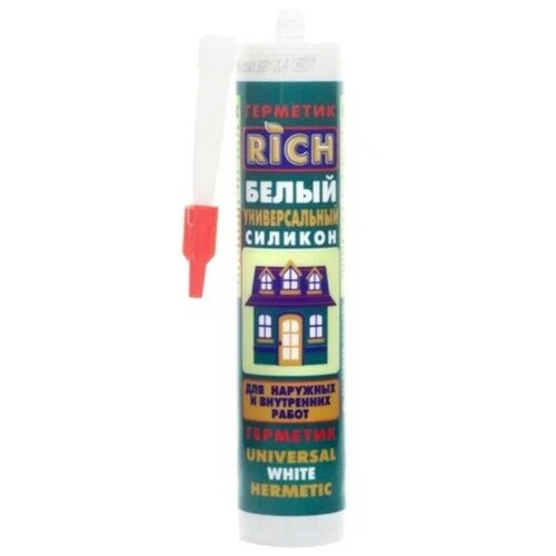 Герметик универсальный силиконовый RICH предназначен для строительных и ремонтных работ: вентиляционные системы, кухни и ванны, морозильные камеры, остекление. Обладает отличной агдезией к большинству строительных материалов: стекло, металл, керамика, дре