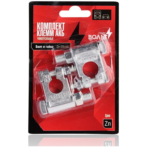 Клеммы АКБ в комплекте цинк, болт и гайка 10мм StartVolt