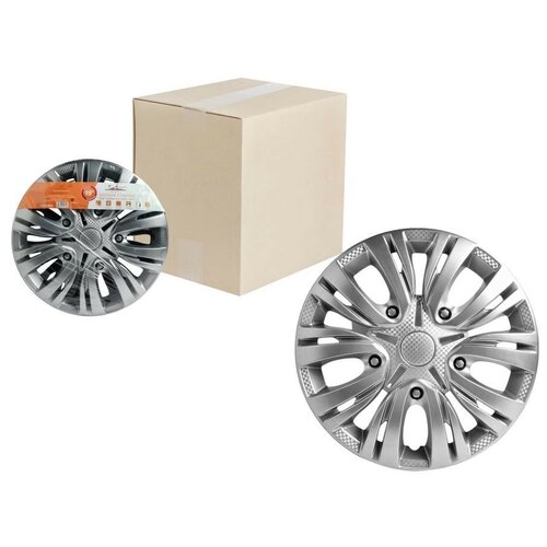 Колпаки колесные 14" "Лион", серебристый, карбон, компл. 2 шт. AIRLINE