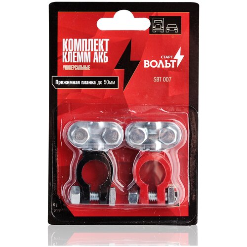 Клеммы АКБ в комплекте свинец, прижимная планка до 50 мм StartVolt