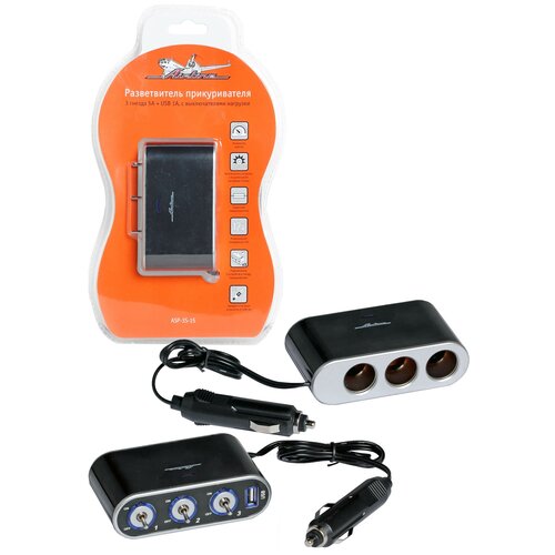 - Наименование товара: Прикуриватель-разветвитель на 3 гнезда и 5А, а также USB порт на 1А.