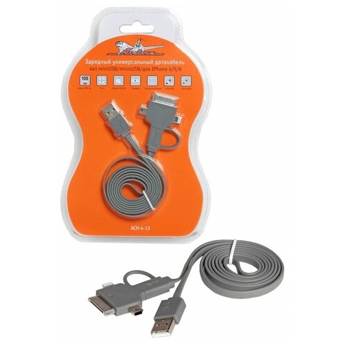 Зарядный универсальный датакабель 4 в 1 miniUSB/microUSB/для iPhone AIRLINE