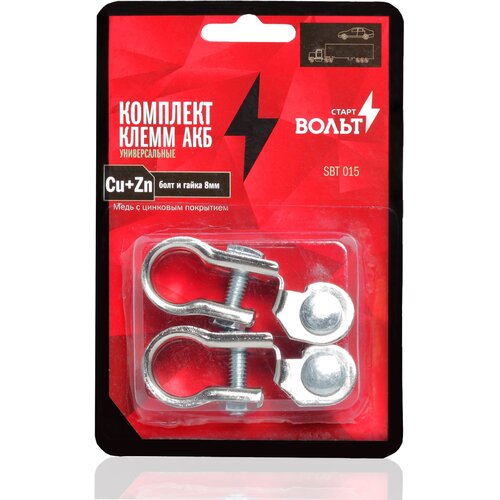 • Наименование товара: Клеммы АКБ в комплекте, латунь с цинковым покрытием, болт и гайка 8мм StartVolt.