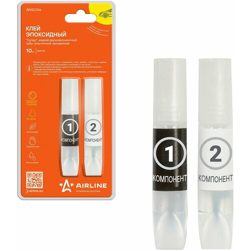 Клей эпоксидный Супер , жидкий двухкомпонентный, тубы, эластичный, прозрачный, 10 г, AIRLINE ADGC016 (1 шт.)