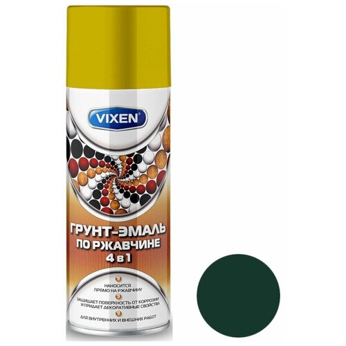Грунт-эмаль по ржавчине 4 в 1, зеленый мох (RAL 6005), аэрозоль 520мл VIXEN