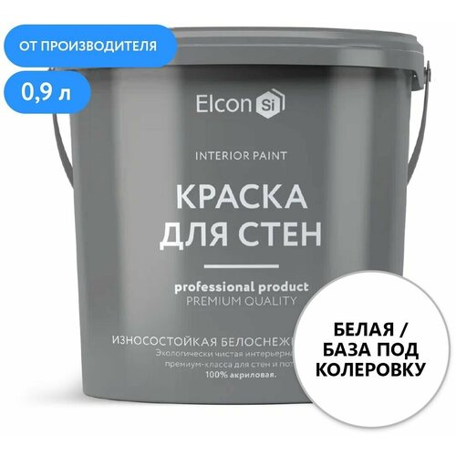 Акриловая краска премиум-класса Elcon, декоративная, моющаяся, быстросохнущая, для стен, обоев, потолка, дерева, белая 0,9 л