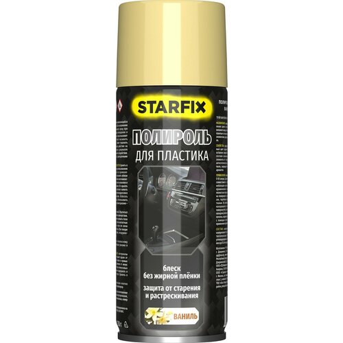 Полироль пластика STARFIX ваниль 650 мл (SM-97412-1) применяется для ухода за приборной панелью и декоративной отделки салона автомобиля.Свойства:средство восстанавливает первоначальный цвет изделия;придает поверхности блеск, не оставляет жирной пленки;благодаря содержанию в составе силиконов, защищает обрабатываемые элементы от старения и растрескивания;создает антистатический эффект;препятствует оседанию пыли;защищает от выцветания.Перед применением обрабатываемую поверхность проверить на совместимость с этим материалом на небольшом участке а незаметной области.Тщательно встряхнуть баллон в течение 5-10 секунд. Сделать пробное распыление. Проверить совместимость с обрабатываемой поверхностью на небольшом участке в незаметной области. Распылить состав по поверхности с расстояния 25-30 см. Тщательно растереть средство чистой мягкой тканью.На небольшие, труднодоступные участки, находящиеся в непосредственной близости от поверхности, на которые не рекомендуется наносить полироль (лобовое и боковые стекла, тканевая обивка потолка, сидений и др.) состав необходимо наносить с помощью губки, или тканевой салфетки.