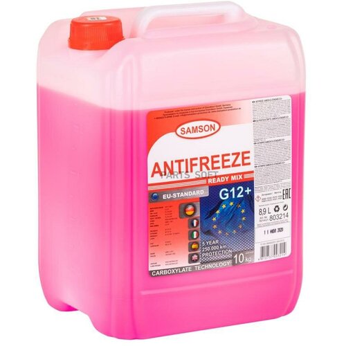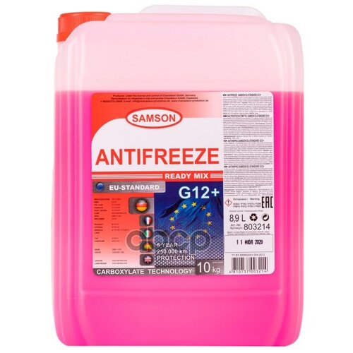 Антифриз Samson Eu-Standard G12+, 10 Кг Готовый, Красн G12+, Astm D3306/D4340/D4985, Bs 6580, Gm 6277M SAMSON арт. 803214