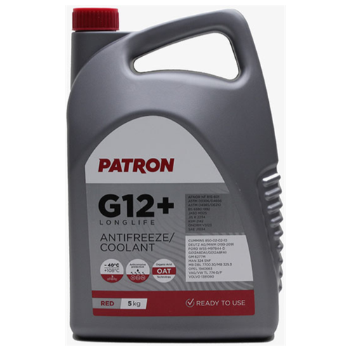 PATRON PCF2005 Антифриз 5кг брутто (4.4л) красный готовый, PATRON RED G12+, TL 774-D/F, G012A8DA1, G012A8FA1, WSS-M97B44-D, 6277M, MAN 324 SNF, MB 325.3, 1940663, 1381080