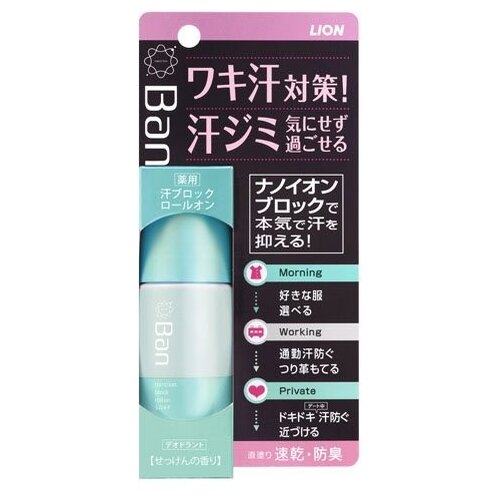 Lion Ban Sweat Дезодорант-антиперсперант роликовый нано-ионный блокирующий рост бактерий Цветочное мыло 40 мл