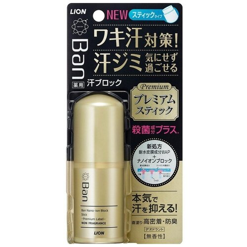 LION Дезодорант-антиперспирант "BAN PREMIUM" против пота без запаха, твердый стик, 20г