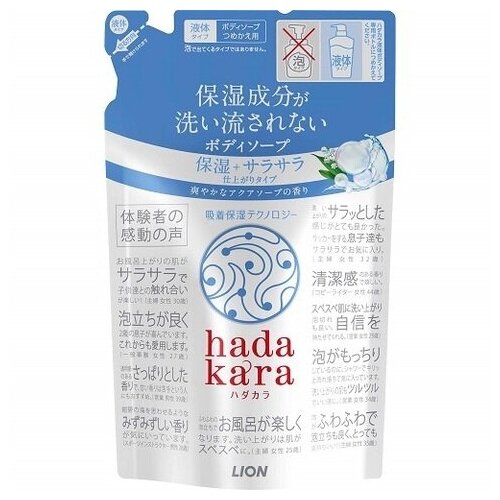 Мыло жидкое для тела Lion Япония Hadakara увлажняющее, водный аромат мыла, сменный блок, 340 мл