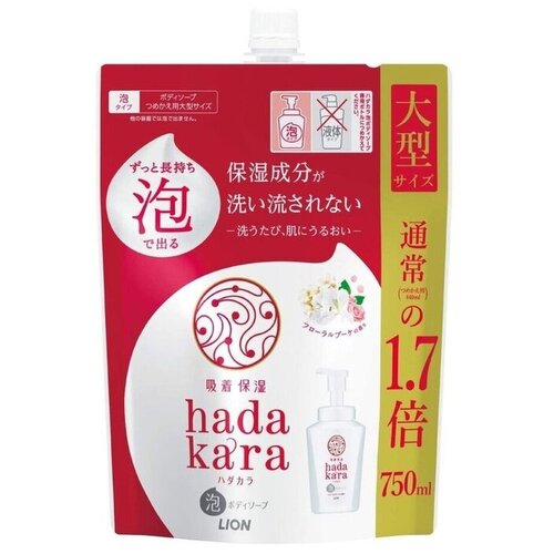 Бархатное увлажняющее мыло-пенка для тела с ароматом букета цветов Hadakara, 750 мл