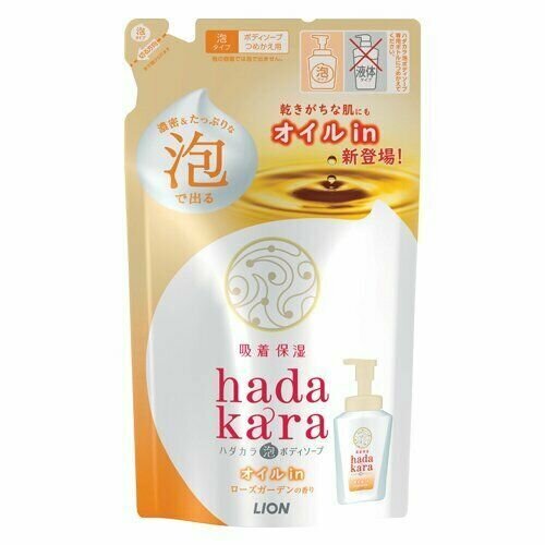 LION Бархатное экстра-увлажняющее мыло-пенка для тела с ароматом розового сада Hadakara" 420 мл (мягкая упаковка)