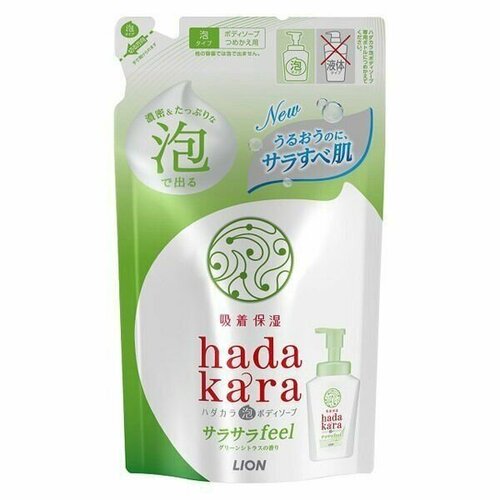 LION Бархатное увлажняющее мыло-пенка для тела с ароматом зелёных цитрусовых фруктов Hadakara 420 мл