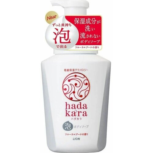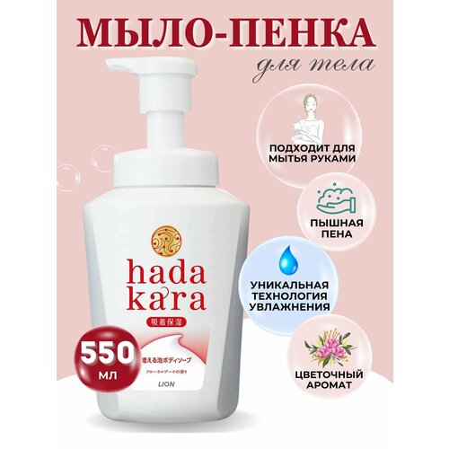 LION Бархатное увлажняющее мыло-пенка для тела "Hadakara" с ароматом букета цветов (для нормальной кожи) 550 мл, флакон