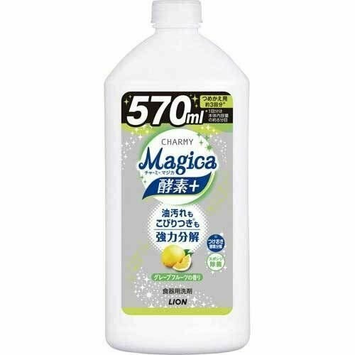 LION Средство для мытья посуды Charmy Magica+ концентрированное, с ароматом грейпфрута 570 мл