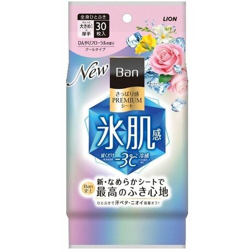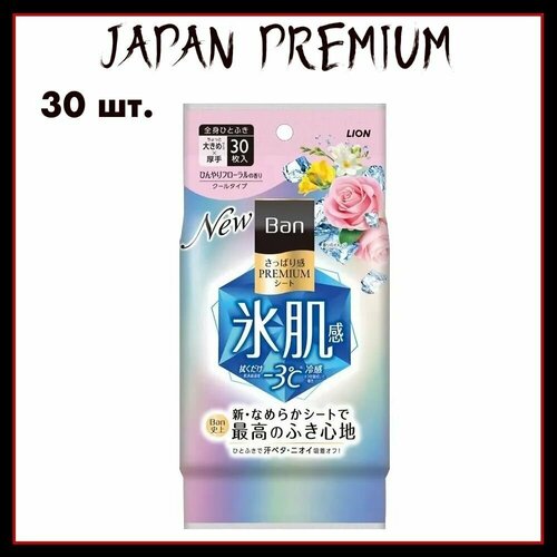 Lion Дезодорант для всего тела в форме салфеток Ban Premium Refresh Shower Sheets (с пудрой, аромат "Искрящийся цветочный") 30 шт.