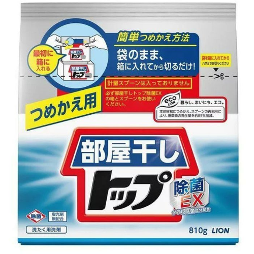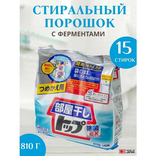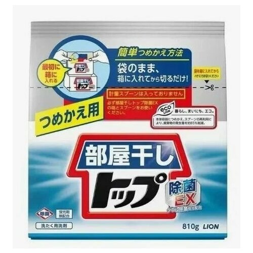 LION «Топ - сухое белье» антибактериальный стиральный порошок с активными ионами для сушки в помещении 810г. Порошок обладает тройным эффектом благодаря двойному антибактериальному и противовирусному компонентам, дополненными ферментами и безопасными уникальными дезодорирующими веществами - активными ионами. Во всех порошках серии «TOP» отсутствуют опасные для здоровья фосфаты. Подходит для сушки во влажном климате, сушки в закрытых помещениях, стирки спортивной одежды, для стирки одежды у людей с повышенной потливостью, а также для стирки одежды, людей, контактирующих с большим количеством больных людей, в т. ч. для медицинской одежды и белья в медицинских учреждениях. Рекомендуется для любых типов ткани - хлопка, шерсти, шелка, льна, трикотажа, для белого и цветного белья. Допускается стирка в холодной воде. Может использоваться для машинной и ручной стирки. Порошок оставляет освежающий аромат. Применение порошка дает тройной эффект: 1. эффективно удаляет грязь, бактерии, вирусы при обычной стирке; 2. устраняет неприятный запах, возникающий при сушке белья во влажную погоду или во влажном помещении; 3. предотвращает повторное появление неприятных запахов, в случае, когда одежда остается влажной, после носки.