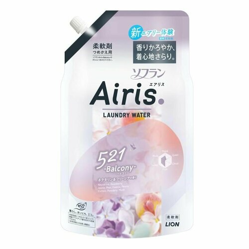 LION Прозрачный кондиционер для белья "Soflan Airis" с воздушным ароматом Balcony (аромат унисекс) 850 мл, мягкая упаковка с крышкой