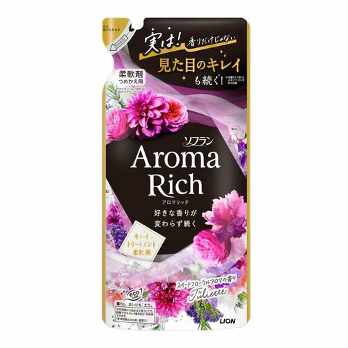 LION Кондиционер для белья Джульетт формула сохранения неизменного аромата и красоты тканей, с натуральными маслами Aroma Rich Juliette 380 мл, мягкая упаковка