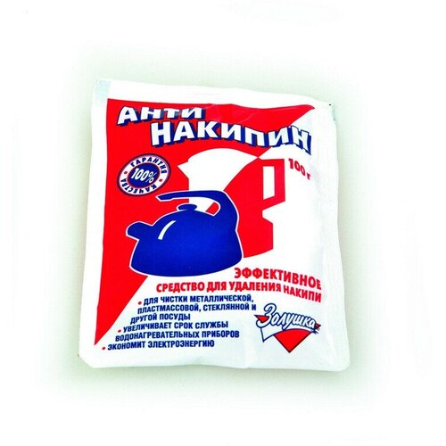 Средство для удаления накипи Антинакипин универсальное порошок 100 г. Назначение. Средство для удаления накипи с металлических, пластмассовых, стеклянных поверхностей, исключая эмалированные. Регулярная очистка Антинакипином поможет содержать Вашу посуду и технику в чистоте и исправности. Средство эффективно работает в воде любой жесткости и температуры. Нетоксичен, биоразлагаем. Способ применения. Для посуды: заполните обрабатываемую посуду теплой или холодной водой. Засыпьте содержимое пакета (1/2 пакета на 2-2,5 л воды) и перемешайте до полного растворения. Оставьте на 15-20 минут. Промойте посуду водой. Для водонагревательных элементов бытовых приборов (чайники, утюги и др.): приготовьте рабочий раствор из расчета 1 столовая ложка средства на 1,5 л воды. Заполните этим раствором область водонагревательного элемента. Нагрейте раствор, не доводя до полного закипания, выключите нагрев. Оставьте на 5 мин. При большом количестве накипи, оставить прибор с раствором на 1 час или провести повторную обработку. После обработки тщательно промыть внутреннюю поверхность прибора чистой водой несколько раз. Для стиральных машин: смотрите инструкцию по применению - раздел очистка от накипи. Меры предосторожности. Соблюдать необходимые меры предосторожности по использованию кислотных средств. Осторожно! Содержит кислоту! При попадании на слизистую оболочку глаз и кожу - промыть большим количеством воды. Не смешивать с щелочными и гипохлорит содержащими моющими средствами. Внимание: при первичной обработке загрязненной поверхности рекомендуется использовать минимальные концентрации средства. Не применять на чувствительных к кислотам поверхностям, такие как эмаль, серебро, мрамор, анодированный алюминий. Состав. Наполнитель > 30%, смесь органических и неорганических кислот - 15-30%. ГОСТ/ТУ. ТУ 2383-005-52662802-2002 с изм. № 1. Условия хранения. Хранить при стандартных условиях в местах, недоступных детям и животным, отдельно от лекарственных и пищевых продуктов. Не допускать попадания прямых солнечных лучей. Срок годности. 3 года с даты изготовления.