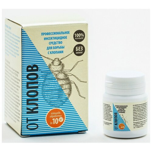 Средство от насекомых От клопов порошок 5 г Назначение: Водорастворимый порошок - профессиональное инсектицидное средство, предназначенное для уничтожения клопов. В настоящее время это одно из немногих средств в мире, которое эффективно уничтожает клопов, так как к большинству инсектицидов у клопов выработалась стойкая устойчивость. Средство также высокоэффективно против тараканов, блох, личинок комаров. Способ применения: Для проведения обработки необходимо приготовить рабочий раствор, добавляя средство от клопов к воде комнатной температуры, затем рабочий раствор тщательно перемешать, Современная форма смачивающегося порошка удобна в дозировании и приготовлении рабочего раствора, который не имеет запаха и не оставляет следов. Содержимого упаковки - 5 г - достаточно для приготовления 1 л рабочего раствора. Наносят рабочий раствор способом равномерного орошения при помощи любой распылительной аппаратуры из расчета 100 мл/м кв. При проведении обработки от клопов особо тщательно необходимо обработать щели вдоль плинтусов, бордюров, места отставания обоев, вокруг дверных и оконных рам, вентиляционных решеток, щели в стенах, мебели, ковры с обратной стороны, деревянные части кроватей, кресел, диванов и матрасы. Состав: Действующее вещество - ацетамиприд 20%, цитрат натрия, технологические компоненты. Срок годности: 2 года с даты изготовления.