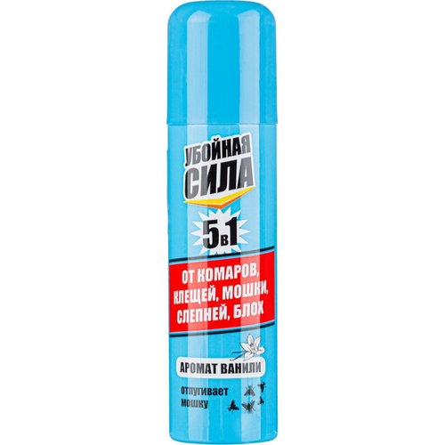 Средство от насекомых Убойная сила Maximum от комаров, клещей, мошки 150 см3Репеллентное средство Убойная сила Maximum аэрозоль 150 мл. Назначение. Для защиты людей от нападения кровососущих насекомых (мошек, комаров, мокрецов, москитов, слепней, блох), лесных и таёжных клещей при нанесении на открытые части тела и одежду. Средство с ароматом ванили. Способ применения. Перед применением балон встряхивать в течение 2-3 секунд. Использовать на открытом воздухе (в защищенном от ветра месте). Средство распылять на изделия на расстоянии 20-25 см. Для защиты от насекомых распылить средство на открытые участки тела, одежду и другие изделия из ткани. Особенно тщательно обработать участки шеи, щиколоток и др места проникновения клещей к телу. Общее время обработки - 1-2 минуты. Время защитного действия: от насекомых при нанесении на кожу - более 4 часов, при нанесении на одежду - до 30 суток; от клещей при нанесении на одежду до 5 суток. Для увеличения срока действия средства хранить одежду в полиэтиленовом пакете. Меры предосторожности. Балон под давлением! Не разбивать и не давать детям. Использовать только по назначению! Не распылять вблизи открытого огня и раскаленных предметов. Предохранять от воздействия прямых солнечных лучей и нагревания выше 40°С. Не курить во время применения. Не наносить на кожу детям, беременным и кормящим женщинам, а также лицам с заболеваниями кожи и повышенной чувствительностью к химическим веществам. Не допускать попадания в органы дыхания, рот, глаза и на поврежденные участки кожи. При попадании в глаза - промыть водой и закапать 30% раствор сульфацила натрия, в рот - прополоскать, в органы дыхания - вывести на свежий воздух. Состав: N, N-Диэтил-3-метилбензамид (ДЭТА) 28,0%, спирт этиловый денатурированный >37,3%, бутан/пропан/изобутан смесь >30%, пропиленгликоль