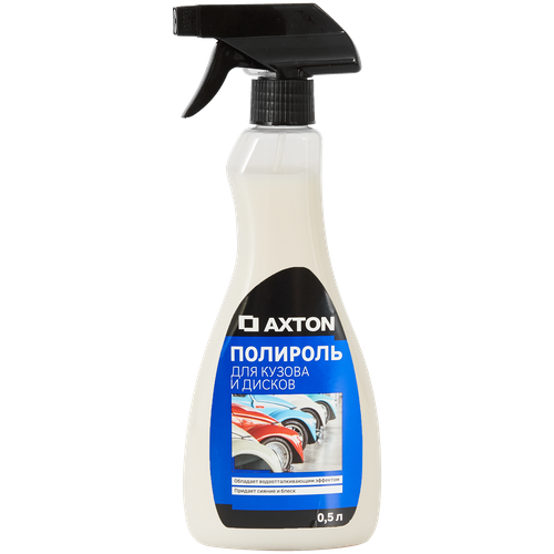 https://samara.leroymerlin.ru/product/polirol-dlya-kuzova-i-diskov-axton-05-l-83973128/Полироль для кузова и дисков Axton предназначен для восстановления блеска лакокрасочного покрытия кузова. Быстро восстанавливает блеск и освежает потускневшие детали кузова. Создает на кузове защитную пленку, отталкивающую воду, ускоряя процесс высыхания, и защищающую поверхность от вредных воздействий окружающей среды. Применяется на дисках и окрашенных бамперах. Особенности: - обладает водоотталкивающим эффектом;- придает сияние и блеск;- придает поверхности антистатические свойства - препятствует оседанию пыли - поверхности дольше остаются чистыми;- эмульсия карнаубского воска придаёт блеск, сияние и защиту, заполняя микроцарапины;- зимой позволяет легче счистить снег с автомобиля. Подробнее о том, [как навести порядок на даче весной](https://leroymerlin.ru/advice/kraski/kak-navesti-poryadok-na-dache-vesnoy-podborka-sovetov/), читайте в нашей статье.Вес, кг 0.555Страна производства РоссияОбъем (л) 0.5Марка AXTONГарантия (лет) 0Тип упаковки БутылкаТип продукта Очиститель для автомобилей