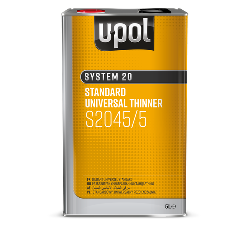 Профессиональный высококачественный универсальный разбавитель автоэмалей и ЛКМ U-POL S2045 Standart Universal Thinner на сольвентной основе. Используется с акриловыми грунтами, лаками и большинством базовых покрытий на основе органических растворителей. Идеален для ремонта больших поверхностей. Совместим с большинством лакокрасочных материалов.