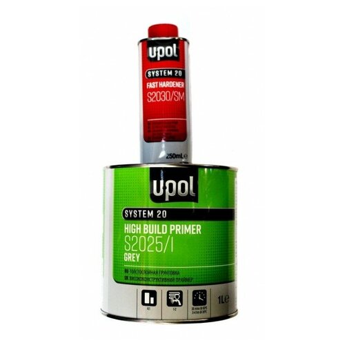 U-POL S2025/1 UHS Грунт наполнитель 4:1 серый + S2030/SM отвердитель быстрый, комплект 1,25л - профессиональный грунт премиум класса, обладающей повышенной жёсткостью и совершенными противоусадочными и антикоррозионными свойствами. Грунты U-POL класса UHS являются универсальными грунтами и дают возможность использовать их как грунты-наполнители, грунты-выравниватели и грунты «мокрый по мокрому». Благодаря своим антикоррозийным свойствам, все 2K грунты U-POL могут наноситься непосредственно на подготовленную стальную поверхностью. Следует сказать, что при работе с алюминиевыми и гальванизированными поверхностями, перед нанесением грунтов рекомендуется применение протравливающего грунта ACID #8. Нужно отметить, что грунт U-POL 4:1 может наносится слоем до 290 микрон. Это очень толстый слой (практически как у жидкой шпаклёвки), который без усадок и растрескиваний обеспечивает заполнение крупных царапин, сколов и др. дефектов. Использование грунтов U-POL разных цветов, значительно экономит расход базовых красок. Разводится грунт с отвердителем в пропорции 4:1 и при этом добавляется растворителя для акриловых материалов от 10 до 20%. Наносится грунт краскопультом с дюзой 1.5-1.8 мм в 2-3 слоя с межслоевой выдержкой 10-15 мин. Грунт пригоден к использованию после смешивания с отвердителем в течении часа. Сушка при 20градусах тепла около 1-2 часов, при 60 градусах около 20 минут. Обрабатывать мокрым шлифованием абразивом с зернистостью 600-800ед, либо сухим способом абразивом зернистостью 280-400 ед. Благодаря высочайшим эксплуатационным качествам грунты марки U-POL являются профессиональным материалом премиум класса и используется в дилерских центрах кузовного ремонта.