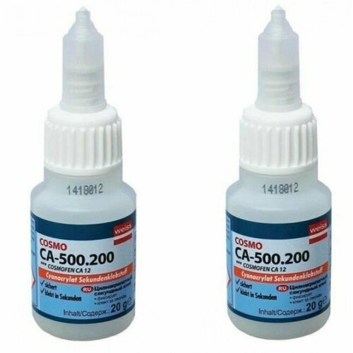 Благодаря своим уникальным характеристикам клей COSMOFEN CA12 имеет самый широкий спектр областей применения: в быту - прекрасно склеивает все виды пластика, резину, металл, керамику и стекло, незаменим при проведении сантехнических работ, при производстве рекламной продукции, игрушек, в сфере сервисного обслуживания и ремонта автомобилей. Время выдерживания склеиваемых поверхностей составляет считанные секунды. При застывании супер клей момент образует прозрачную пленку, не заметную для глаз. Не использовать клей для склеивания пористых поверхностей. сфера применения:Для склеивания уплотнительных профилей из EPDM и для приклеивания EPDM к профилям из жесткого ПВХ и алюминиевым профилям в оконном производстве.Для склеивания силиконовых уплотнителей и уплотнителей из TPE.Склеивание различных видов пластмасс, эластомеров, резины.Для склеивания полимерных материалов.Цианоакрилатный секундный клей мгновенной фиксации.С широким спектром адгезии (лучший результат показывает с пластмассами).Быстрая фиксация.Высокая прочность.Хорошая устойчивость к внешним атмосферным воздействиям, к воздействию температур и УФ-излучению.Без растворителей.Для склеивания уплотнительных профилей из EPDM и для приклеивания EPDM к профилям из жесткого ПВХ и алюминиевым профилям в оконном производстве.Для склеивания силиконовых уплотнителей и уплотнителей из TPE.Склеивание различных видов пластмасс, эластомеров, резины.Для склеивания полимерных материалов.Цвет цианоакрилатного клея COSMOFEN CA-500.200 (50): прозрачный.Время затвердевания: до 16 ч (при t° +20°C и влажности воздуха 50%).Выход: капельный.Вес 50 г.Срок хранения: 12 мес. (при t° от +15°C до +25°C).