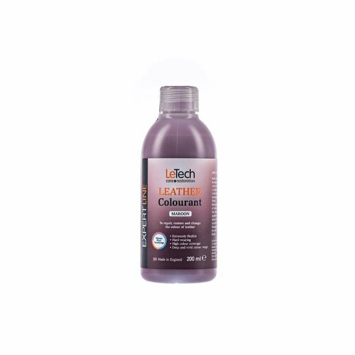 Краска для кожи, для кожи автомобиля, для обуви, для одежды, темно-бордовый, LeTech (Leather Colourant) Maroon 200 ml