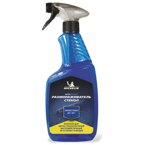 Размораживатель стёкол Michelin — быстродействующее средство, которое эффективно действует даже при температуре -40°С. Эффект удаления инея и намёрзшего снега проявляется в течение 5 секунд. Средство безопасно для щёток стеклоочистителей, не оставляет разводов на стекле. Также подходит для размораживания замков.