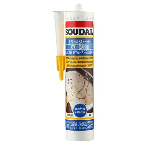 Нейтральный санитарный силикон SOUDAL белый 118312