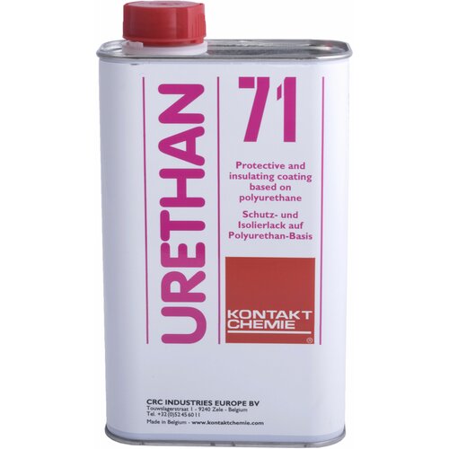 URETHAN 71Защитное эластичное покрытие (лак) на основе уретана.Прозрачное защитное изолирующее покрытие для печатных плат из высыхающей на воздухе однокомпонентной полиуретаново-алкидной смолы.Свойства:Отличные электроизоляционные свойства;Отличная адгезия (прилипаемость) в диапазоне температур от минус 40°C до плюс 120 °C;Высокая стойкость к влажности и агрессивным средам.Применение:Проверенное решение для покрытия печатных плат в качестве защитного лака. Особенно рекомендуется в условиях агрессивных сред, повышенной влажности и температуры;Благодаря своим эстетическим и адгезионным свойствам, URETHAN 71 может использоваться в качестве декоративного и прозрачного защитного слоя для различных металлических предметов. Слегка желтоватая окраска покрытия подчеркивает эстетическую привлекательность не-ферро-металлических поверхностей.Инструкция:Для относительно небольших объемов работ очень хороших результатов при низких затратах можно добиться используя препарат в аэрозольной упаковке. Препарат распыляется с расстояния 20-30 см на сухую, очищенную поверхность. Во избежание застывания URETHAN 71, после использования аэрозоля необходимо перевернуть баллон вверх дном и распылять его до тех пор, пока из баллона не начнет выходить только газ;Для промышленного использования рекомендуется использовать URETHAN в промышленной упаковке. Лак может быть нанесен как кистью, так и распылителем. Если в том виде, в котором поставляется препарат, он окажется слишком вязким, для его разведения можно добавить немного препарата “Thinner for Urethan 71” или ацетона. Необходимая пропорция находится опытным путем;При хранении препарат должен быть хорошо запечатан, чтобы избежать высыхания;При высыхании URETHAN 71 происходит перестроение молекулярных связей вещества, благодаря чему лак образует очень стойкое покрытие. Из-за этого невозможно повторно использовать лак, если он уже высох. Попытки применить растворитель в этом случае не приведут к желаемому результату;При комнатной температуре почти все растворители испаряются через 120 минут. За это время покрытие URETHAN 71 высыхает в достаточной степени, чтобы оборудование можно было брать в руки или монтировать. Процесс же молекулярной перестройки (сшивки или полимеризации) препарата при обычной температуре требует несколько дней. Однако до 90% вещества может быть модифицировано (сшито) в течение 24 часов при температуре 60°С.Предупреждения:При работе с URETHAN 71 используются стандартные меры предосторожности для воспламеняющихся веществ;Содержит горючие компоненты, избегать открытого пламени;При работах с URETHAN 71 необходимо обеспечить хорошую вентиляцию в помещении.Для всех изделий CRC имеются листки с данными по технике безопасности (MSDS-аэрозоль и MSDS-канистра) в соответствии с директивой 91⁄155⁄EEC.