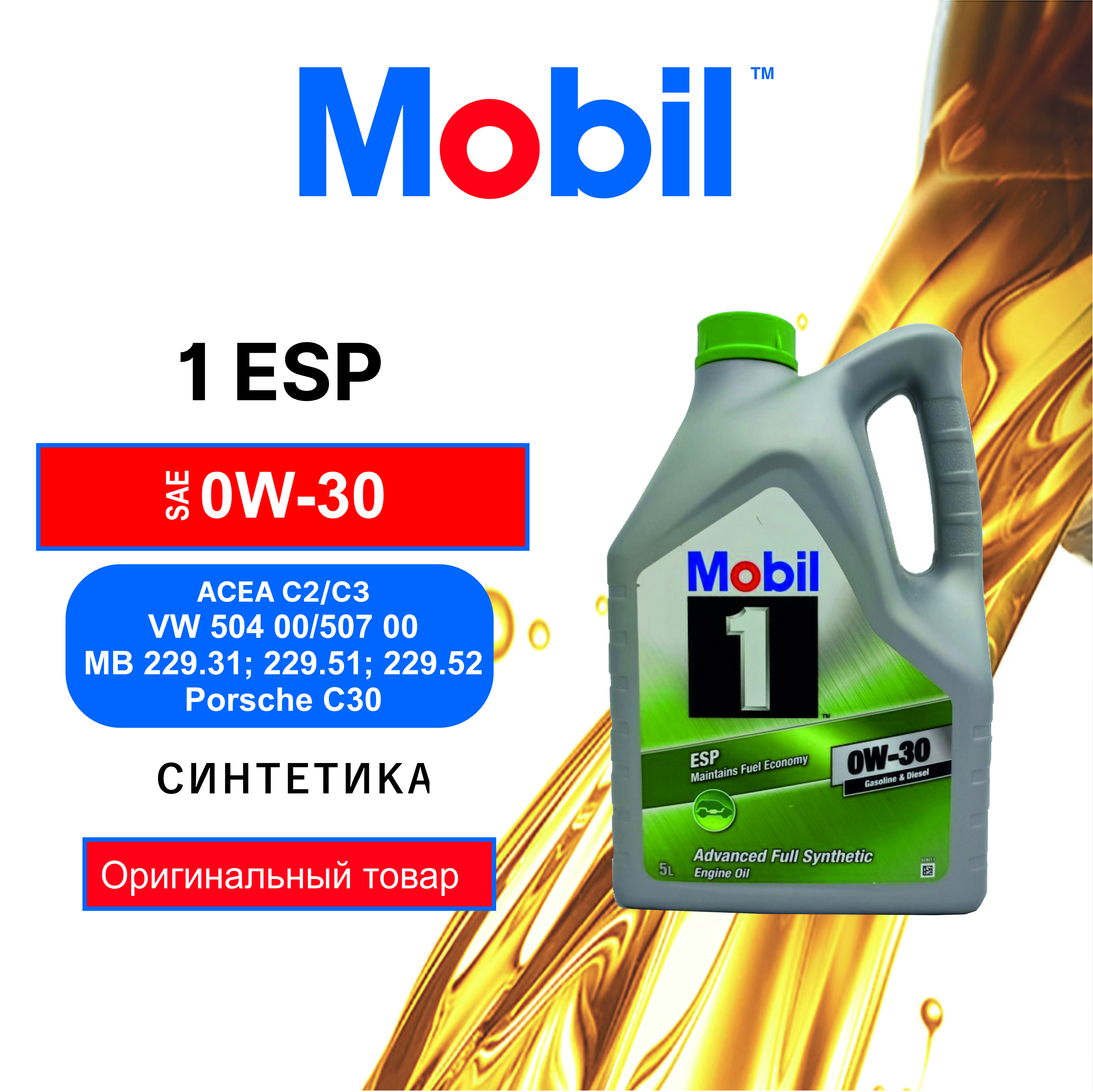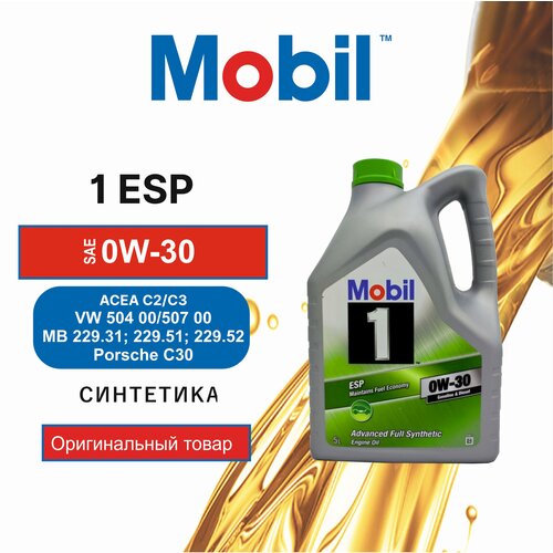 Синтетическое моторное масло MOBIL 1 ESP 0W-30, 5 л, 1 шт.