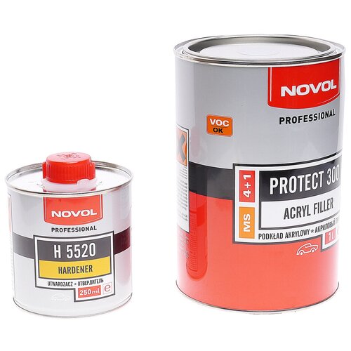 NOVOL 37011 Грунт серый акриловый 300 MS 2K 4+1 1л с отвердителем Н5520 0.25л NOVOL