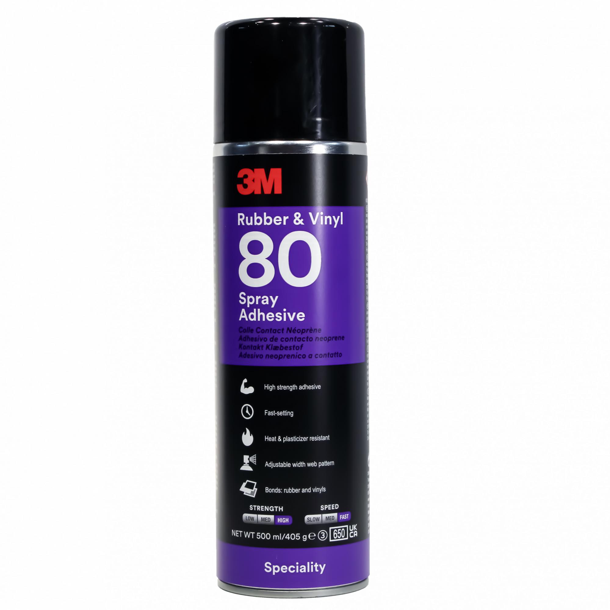 Клей-спрей 3M 80 - это высокоэффективный контактный аэрозольный клей на основе неопрена. Этот клей обладает высокой прочностью и быстро схватывается, быстро образуя прочные соединения, идеально подходящие для склеивания резины, винила на подложке, кожи, кожзаменителя, дерева, металла и многих пластмасс. Этот аэрозольный клей также обладает исключительной термостойкостью, что обеспечивает долговечность склеивания и долгосрочные результаты. Эти свойства делают 3M Rubber And Vinyl Spray Adhesive 80 отличным выбором для таких применений, как сшивание резиновых и виниловых листов, уплотнение уплотнителей, обивка, покрытия для бассейнов, а также ремонт резины и винила.Этот продукт обычно используется для склеивания резины, винила, кожи, кожзама, дерева, металла и многих пластмасс.Обладает высокой прочностью и температурной стойкостью.Благодаря нитевидному типу аэрозольных частиц не дает тумана при работе и позволяет производить точное нанесение.Имеет высокую скорость отверждения, что позволяет производить склеивание уже через 4 минуты после нанесения в то время как традиционные контактные клеи требуют перед склейкой 15-20 минут выдержки.Применения: общая промышленность, автомобилестроение и спец. транспорт.Склейка, скрепление, присоединение, монтаж, крепление.Рекомендуемые области применения:Склеивание всех видов резины, кроме EPDMПриклеивание большинства разновидностей винила и кожи с подложкойМонтаж панелей из нержавеющей стали, ребер жесткости и металлических предохранительных пластинСоединение многих пластиков, ламинатов и изделий из дерева.Приклеивание уплотнителей.