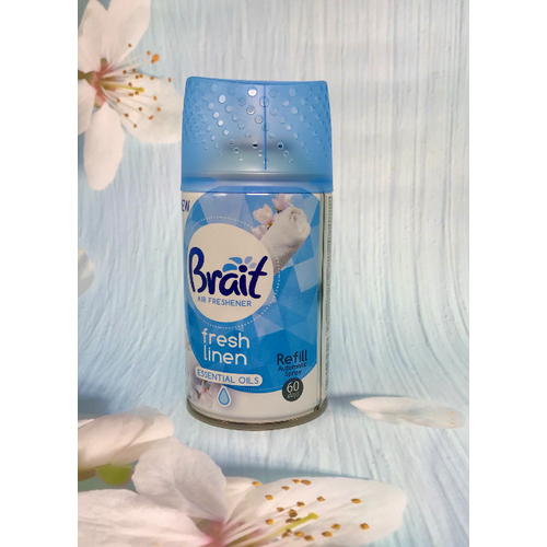 Сменный баллон к автоматическому распылителю освежителя воздуха BRAIT Fresh Linen (250 мл), совместим с AirWick, аромат цветочно-свежий