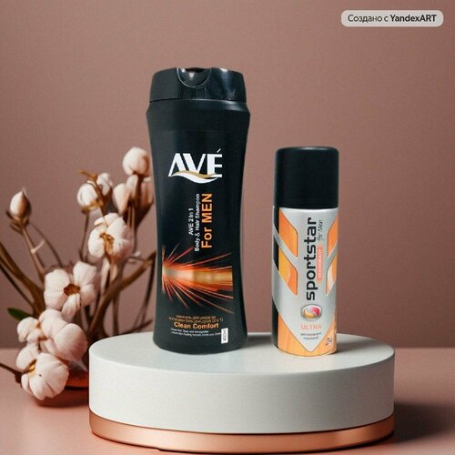 Комплект для мужчин: Шампунь-гель для душа AVE 2в1 400 мл + Дезодорант-спрей SPORT STAR 175 мл