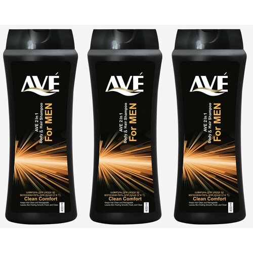 AVE Шампунь-гель для душа 2в1 Чистый комфорт, мужской, 400 мл - 3 шт