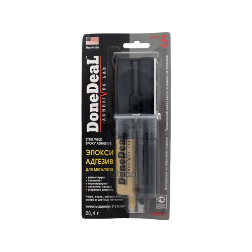 Не секрет, что машина давно уже перестала восприниматься как просто средство передвижения, и водители покупают всё лучшее для своих железных коней. Клей эпоксидный DONE DEAL для металлов, шприц, 5-минутный, серый, 28,4 г — идеальный выбор, если вы ставите целью и улучшение технических характеристик, и поддержание внешнего вида автомобиля.