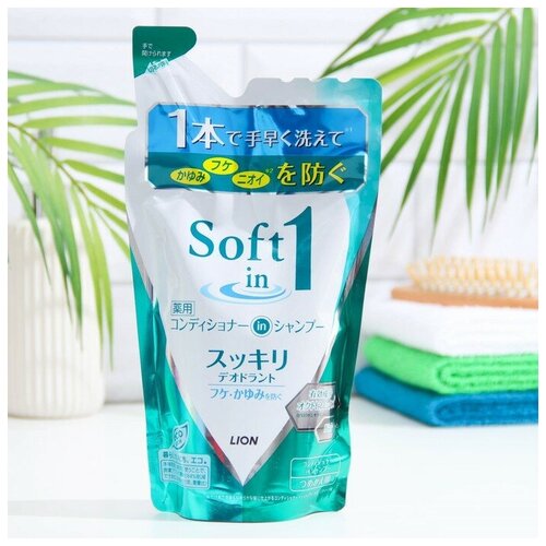 Шампунь-кондиционер для волос 2 в 1 LION Soft in 1, против перхоти, сменый блок, 380 мл