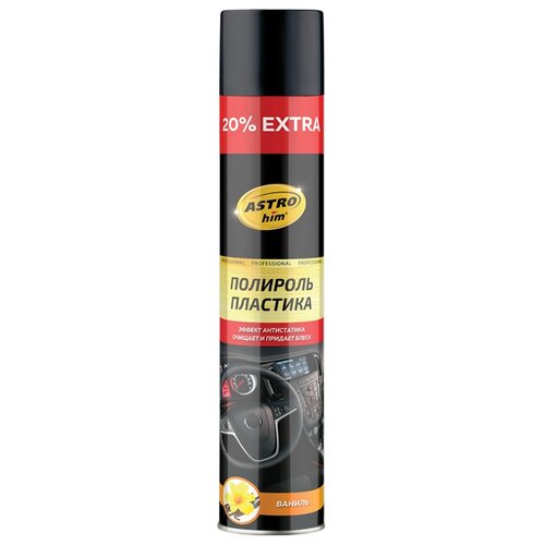 Артикул: 1817-354. Вес: 597 гр., Размер упаковки: 6 x 34 x 6 см., Объём: 500 мл - 1 л, Тип ёмкости: Аэрозоль, Температурное ограничение: Нет, Темпер. ограничение НЕ ниже ℃: -40. Эффективно очищает и полирует пластиковые, виниловые и резиновые элементы отделки интерьера автомобиля. Обновляет цвет пластика, придает поверхности глянцевый блеск. Содержит антистатические компоненты, предотвращающие притягивание пыли к приборной панели. Не оставляет жирной и липкой пленки. Защищает от разрушительного действия солнечных лучей, предотвращает выгорание и растрескивание пластика. Обладает приятным ароматом ванили.